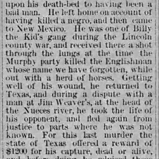 Jesse Dancer, alias John Middleton, died of smallpox Nov. 19, 1882 in Lorenzo, New Mexico. At his bedside were witnesses that said Middleton confessed his true identity, along with nefarious deeds he committed and names pertinent to those deeds. It was discovered that Middleton had a $1,200 reward for his capture in Texas when he passed.